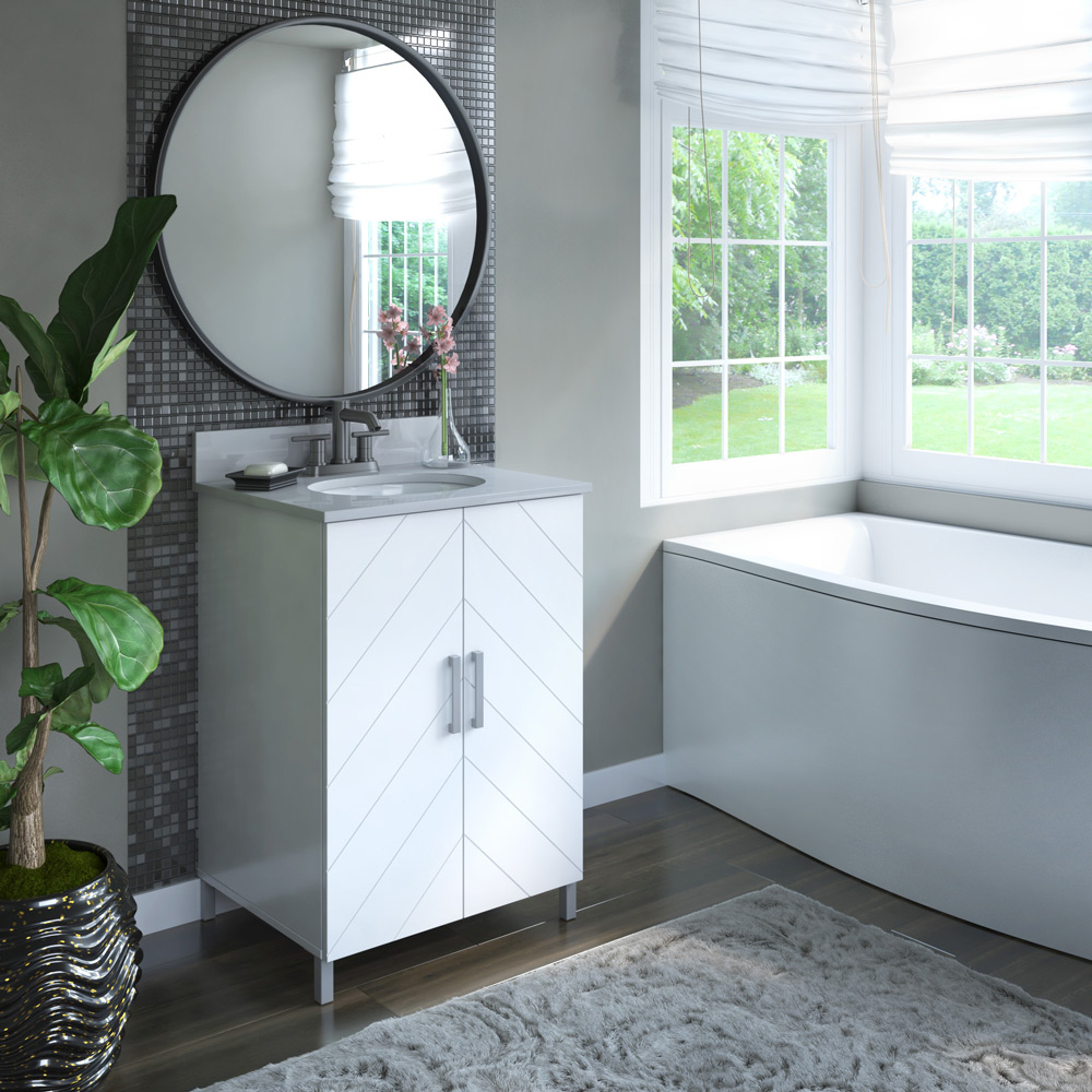 We use our bathrooms every day, so why not add style to these functional spaces? Whether you love contemporary décor or a seaside cottage feel, a bathroom vanity can help bring any vision to life. If you’re looking for a polished design, this modern vanity adds a sophisticated look to your bathroom. Style it with monochromatic linens or add fresh flowers.