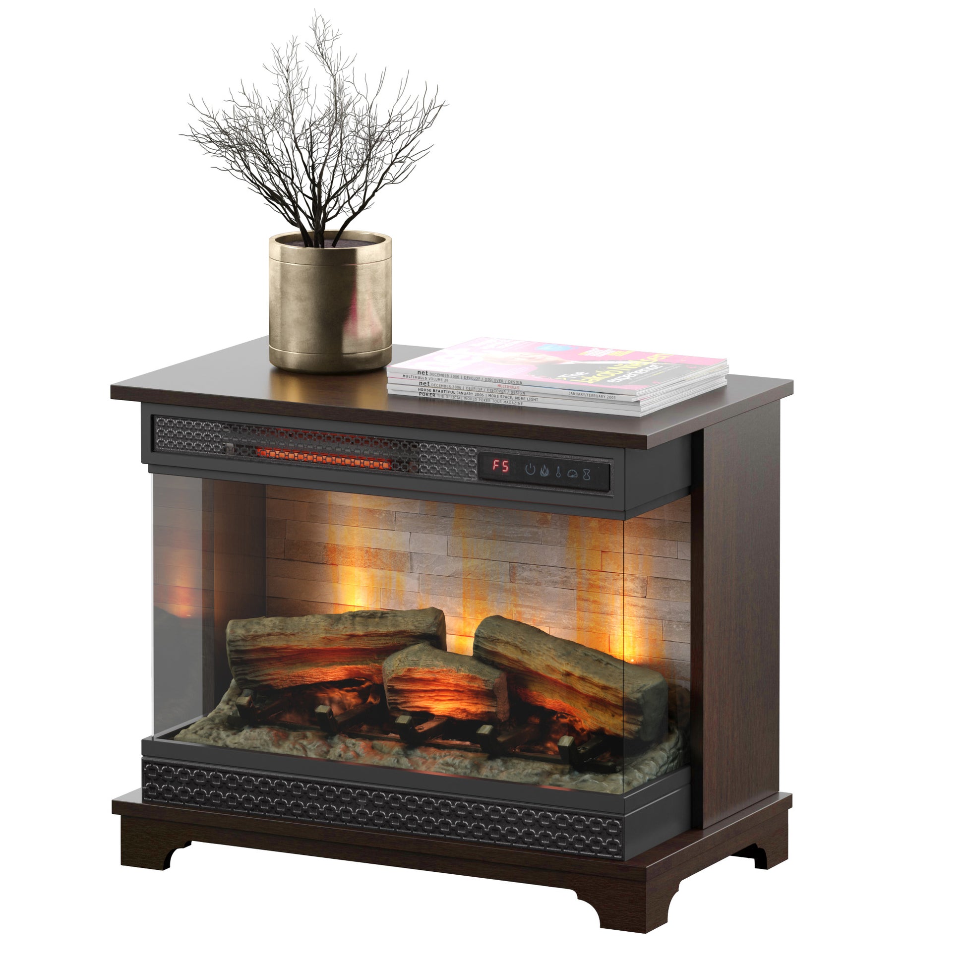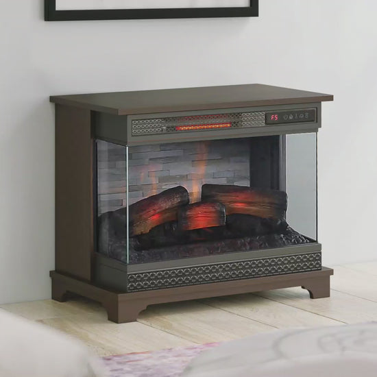 Whether you’re enjoying a cozy night in or setting the mood for entertaining, the panoramic views of the Mollie electric fireplace are the perfect thing for every occasion. With a three-sided glass display, you and guests can enjoy the ambiance of flickering flames from any seat in the room. A back panel featuring a stacked stone pattern design is a chic backdrop for your fire and an instant style upgrade for any room. Take in the fireside glow all year long since independent heat and flame effect controls let you customize your ideal fire with or without the heat on.