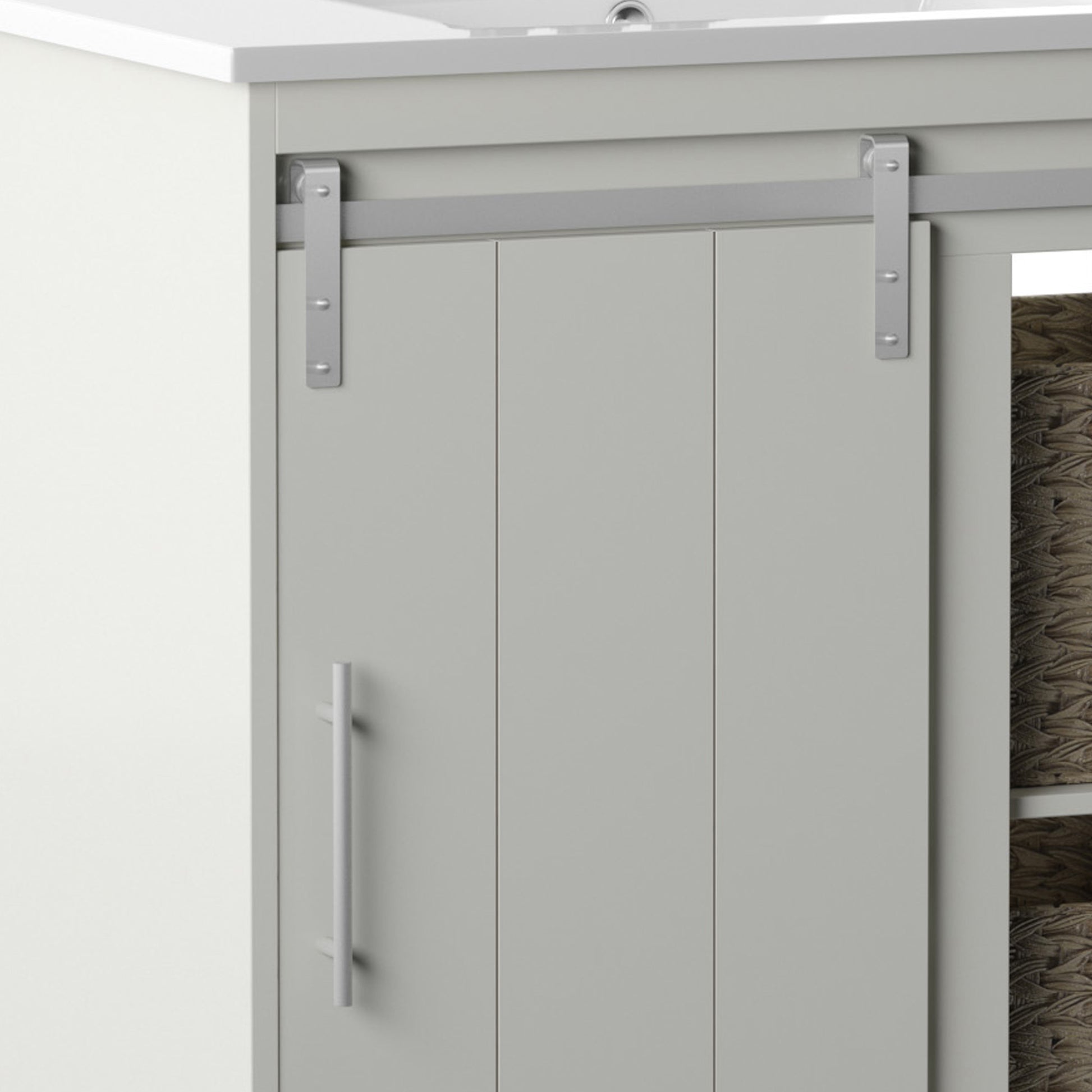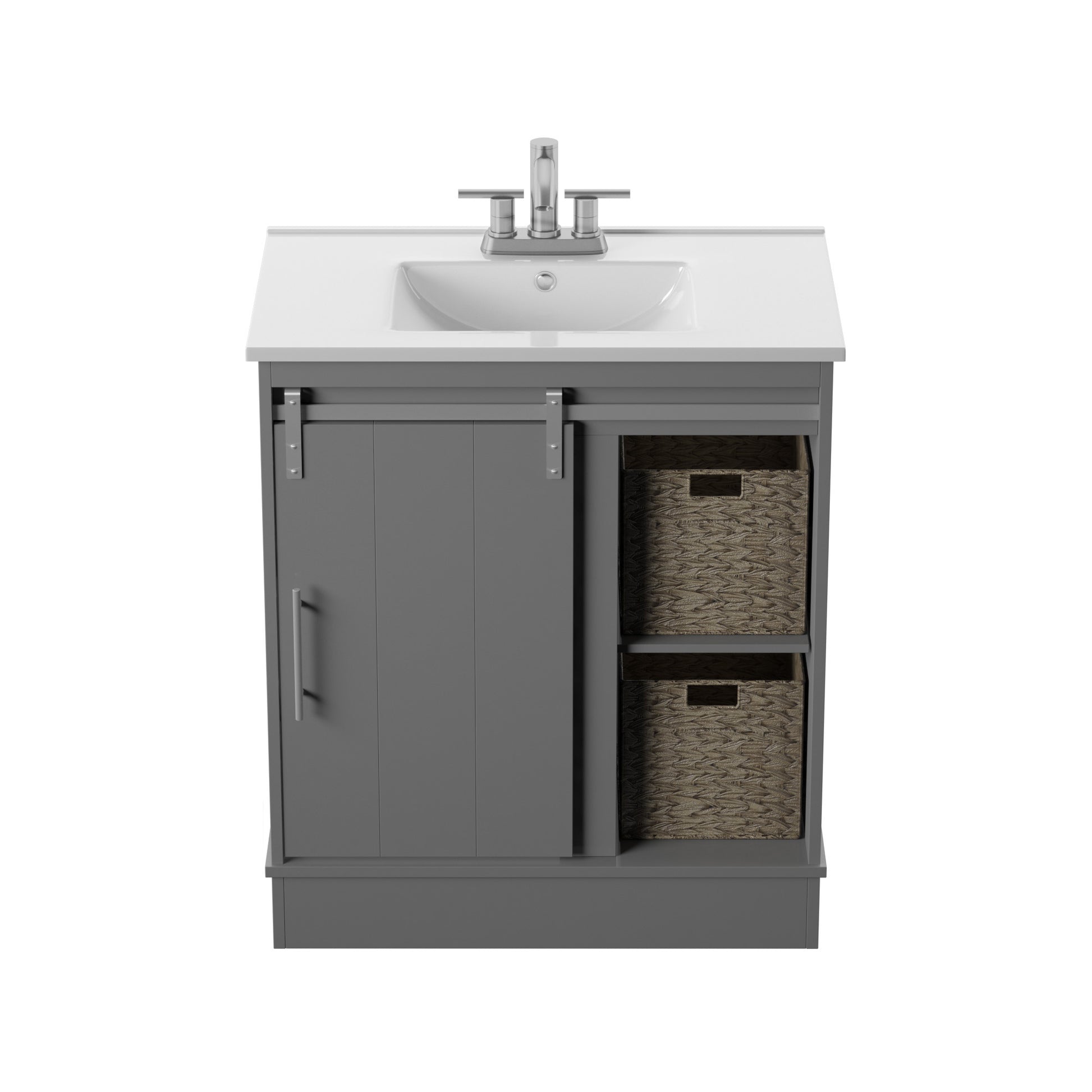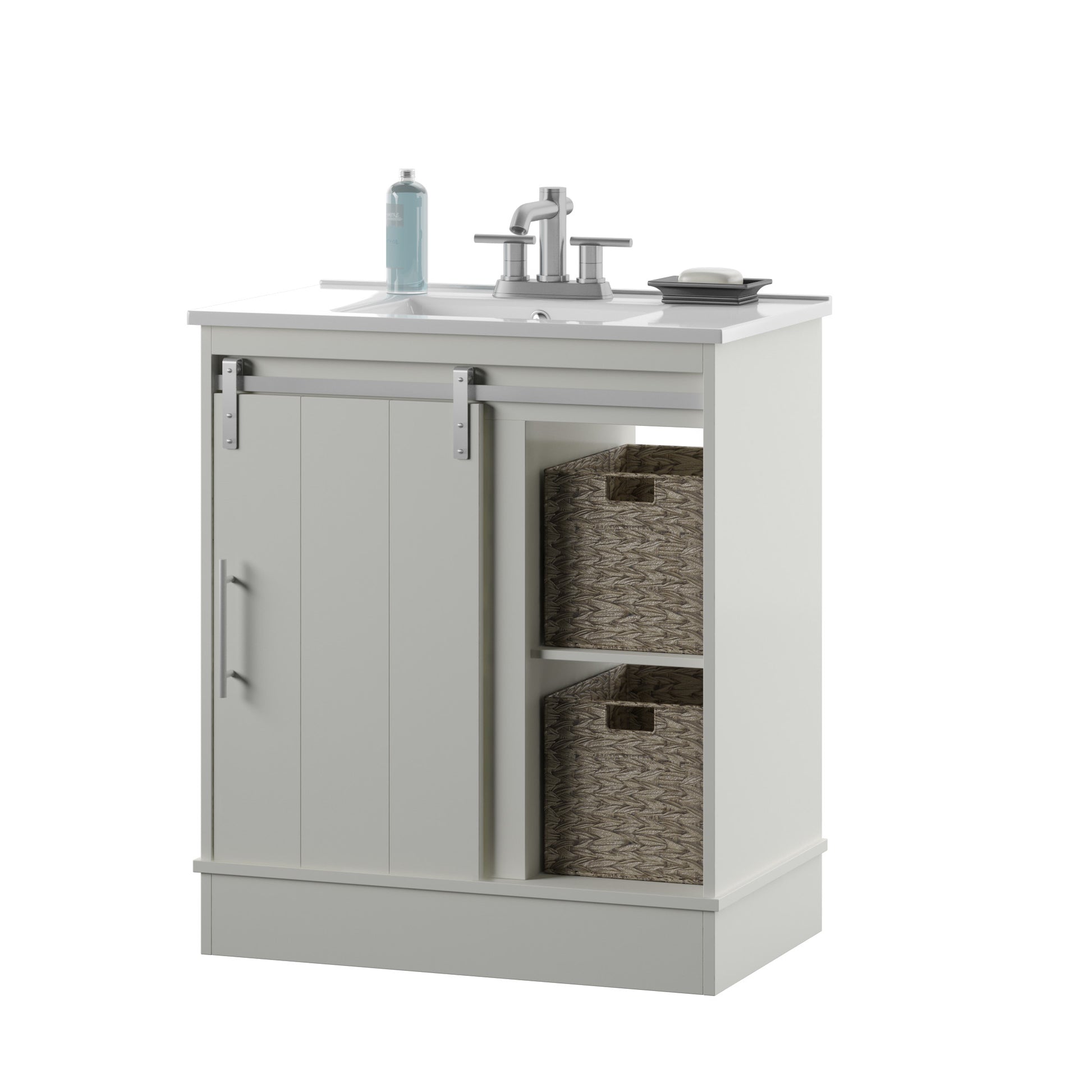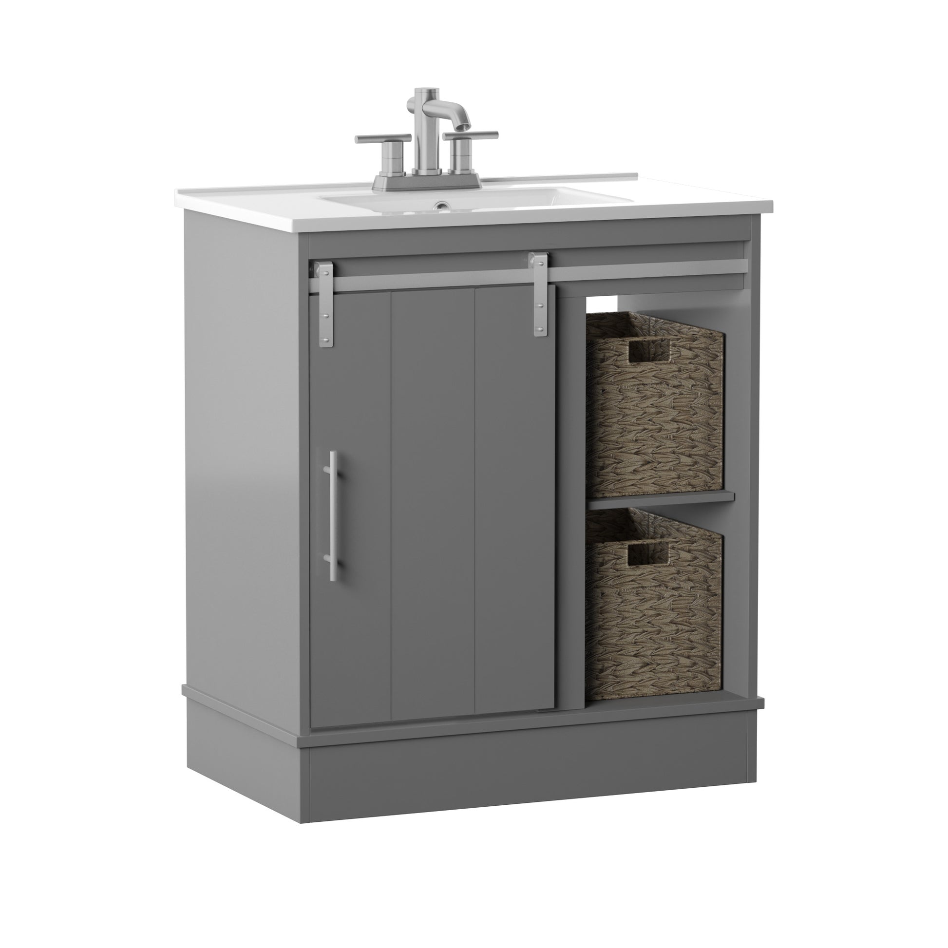 Dalton 30" Sliding Barn Door Single Bathroom Vanity with Woven Baskets