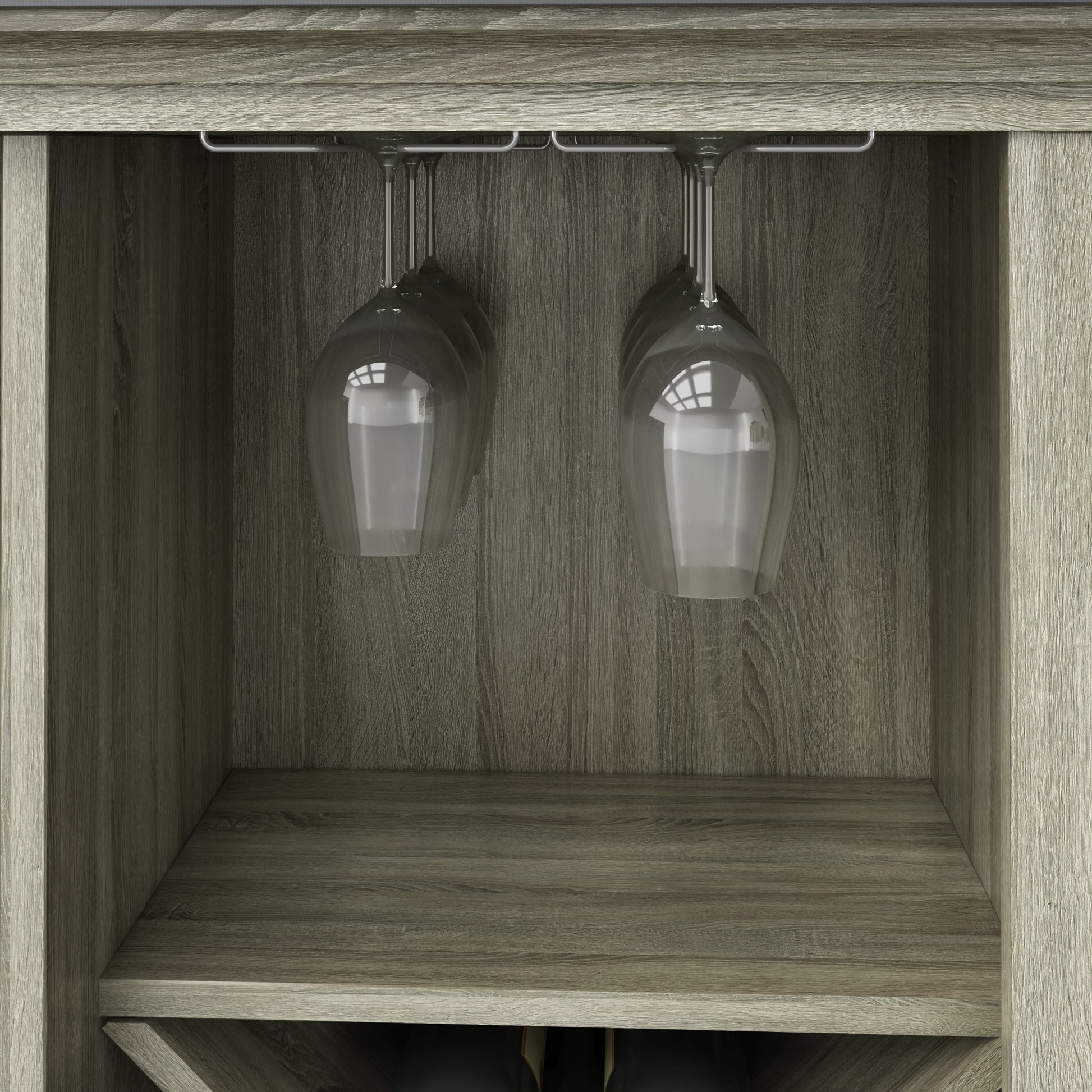 The chic style of an industrial loft can be yours no matter where you live - from a large, single-family home to a small city apartment - with this bar cabinet featuring convenient storage for entertaining. A built-in stemware rack offers help with organization, while an X-shaped insert creates easy wine storage. Inside the cabinet, two adjustable shelves offer customizable storage that works for you. And the textured glass door and chic metal mullion details create a distinctive look you’ll love. When you get the matching TV stand, you can upgrade your entire living space with industrial style.