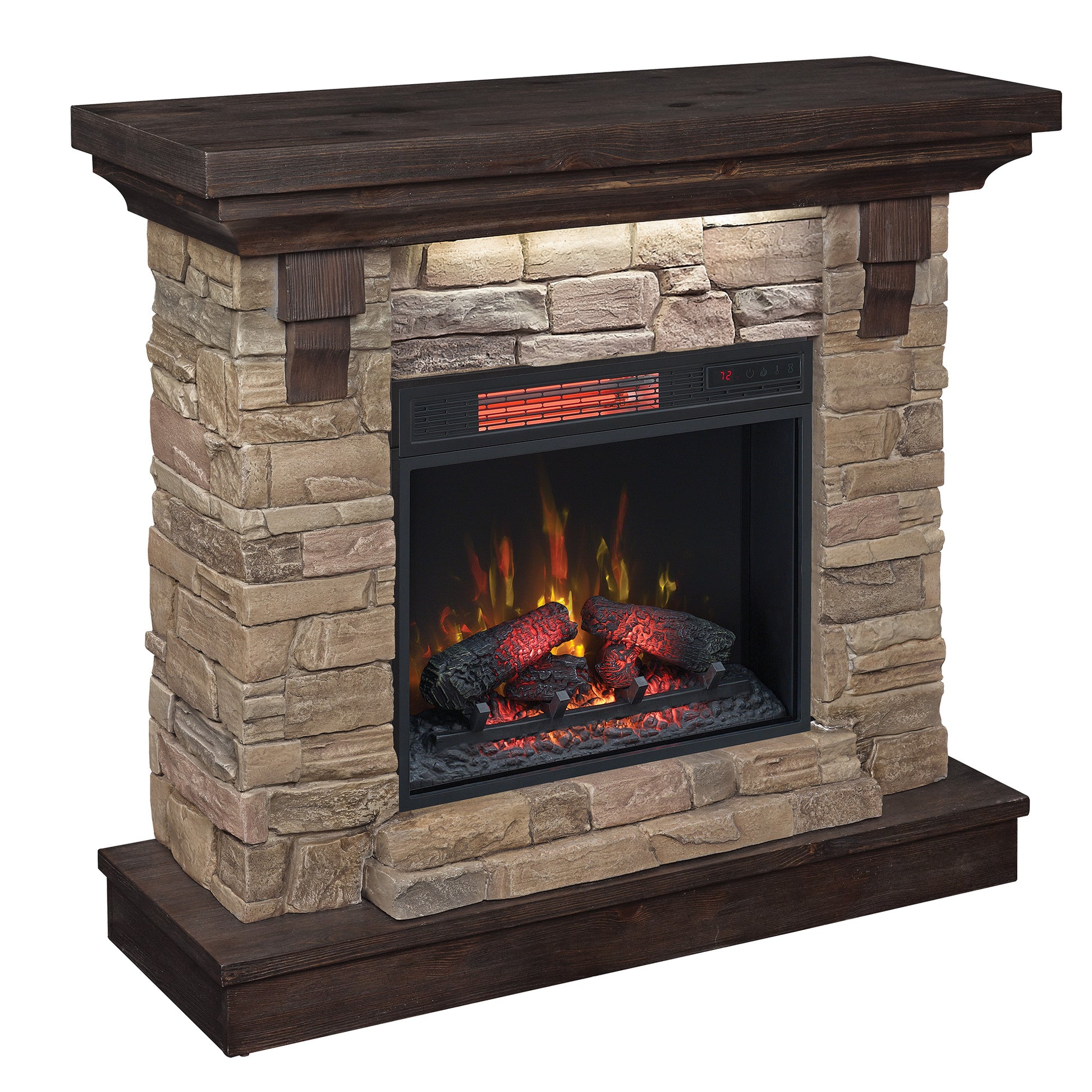 Add rustic flair to any room while enjoying year round ambiance with this wall mantel. The beautiful Wind River Flagstone enhances this mantel’s rustic appeal while an Aged Coffee finished wood top and base exude pleasant warmth. This wall mantel’s features are enhanced by soothing LED downlighting that creates a relaxing setting. This electric fireplace mantel assembles easily for quick set up and enjoyment. 23” electric fireplace sold separately.