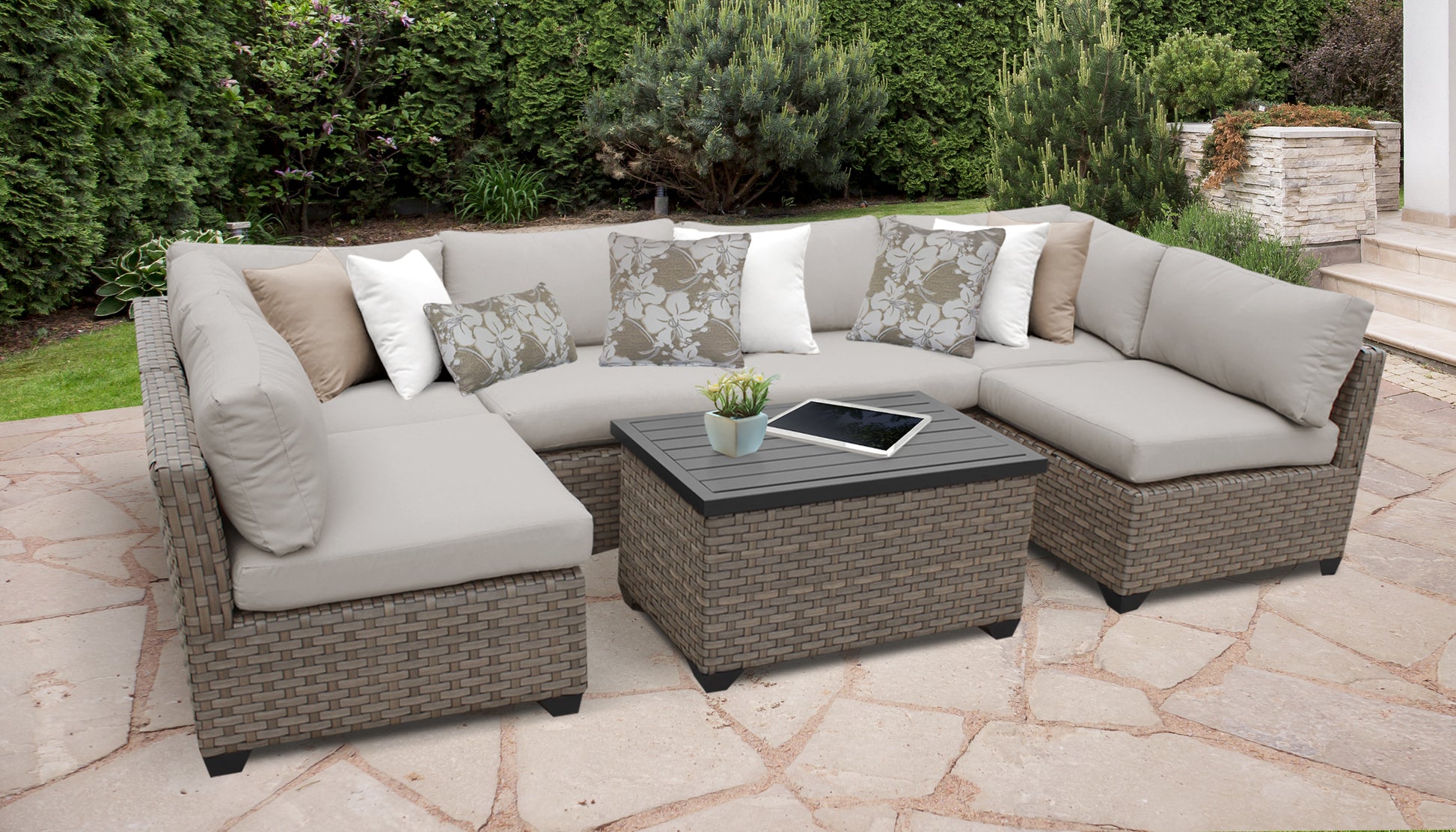 Monterey 7-Piece Wicker Outdoor Furniture Set with Storage Coffee Table