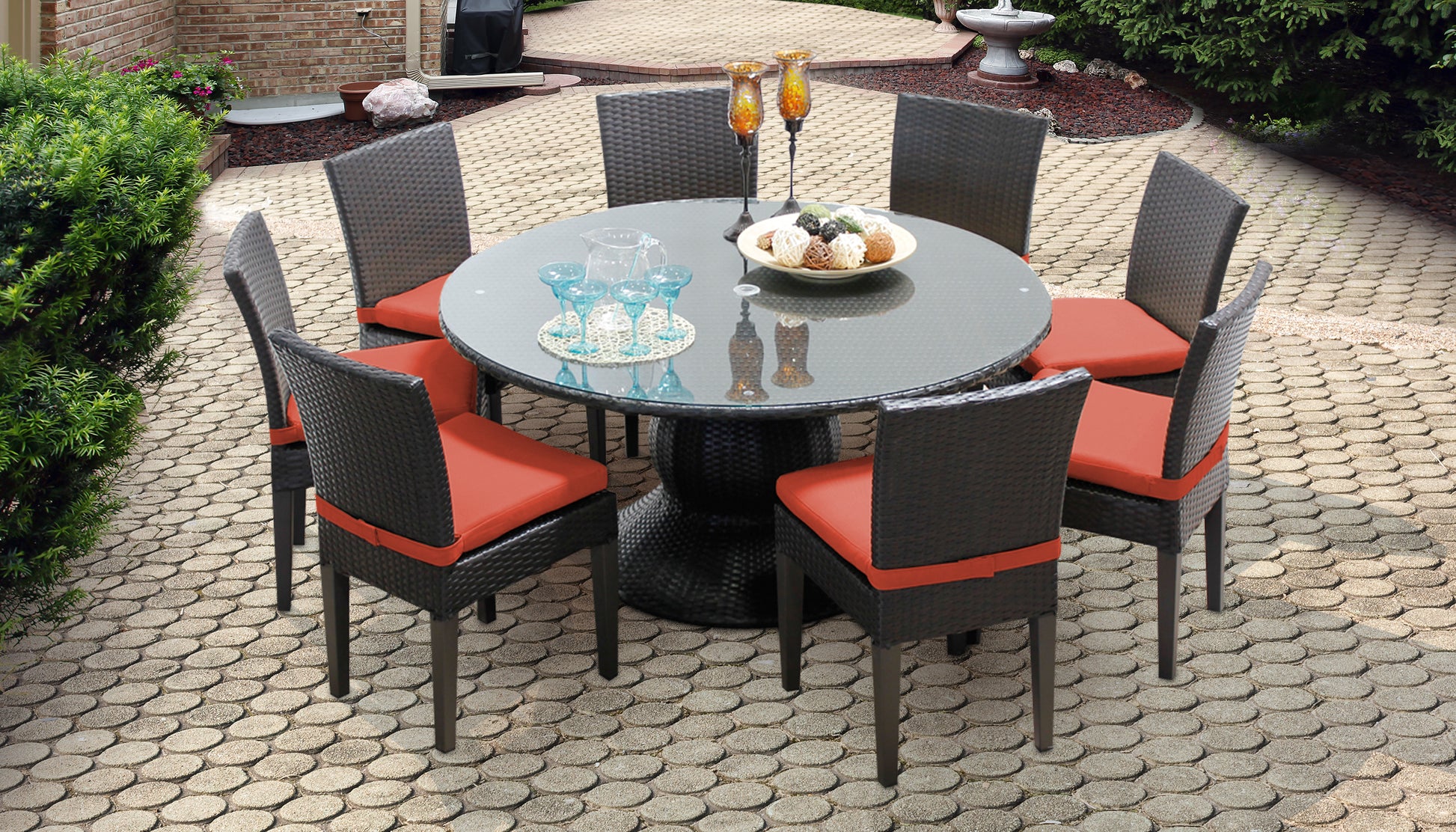 Napa 9 Piece Round Outdoor Patio Wicker Dining Set with Cushions
