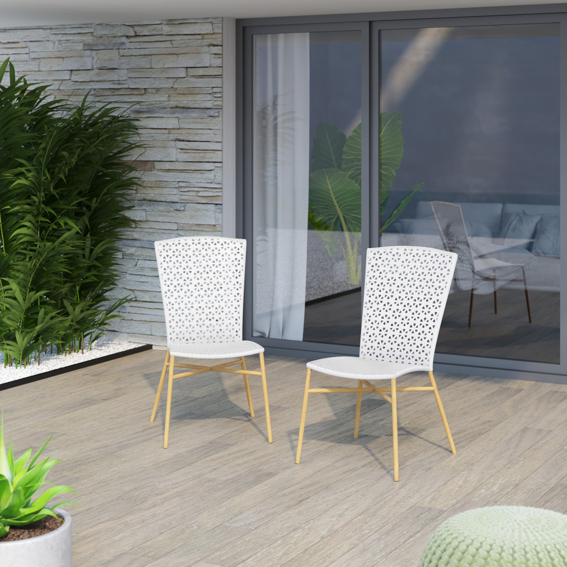 With this set of 2 outdoor dining chairs, you can have additional seating on hand for guests, so they can enjoy comfortable seating while catching up over dinner and drinks. The chairs are constructed with resin wicker over powder-coated steel frames to provide durability. The weather-resistant design helps these chairs stand up to the elements. Make these two dining chairs extra seating at your next get-together, or pair them with the coordinating table (sold separately).