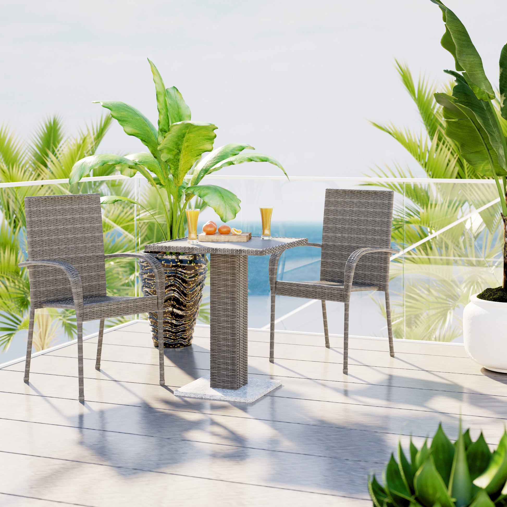 TK Classics® 3-Piece Wicker Outdoor Dining Set, Gray