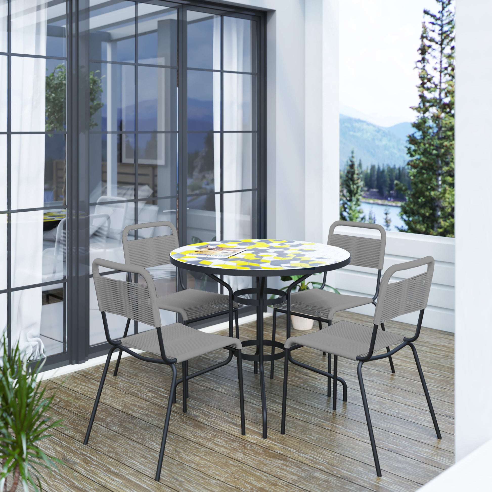 TK Classics 5 Piece Outdoor Dining Set with Geometric Tabletop, 35"W
