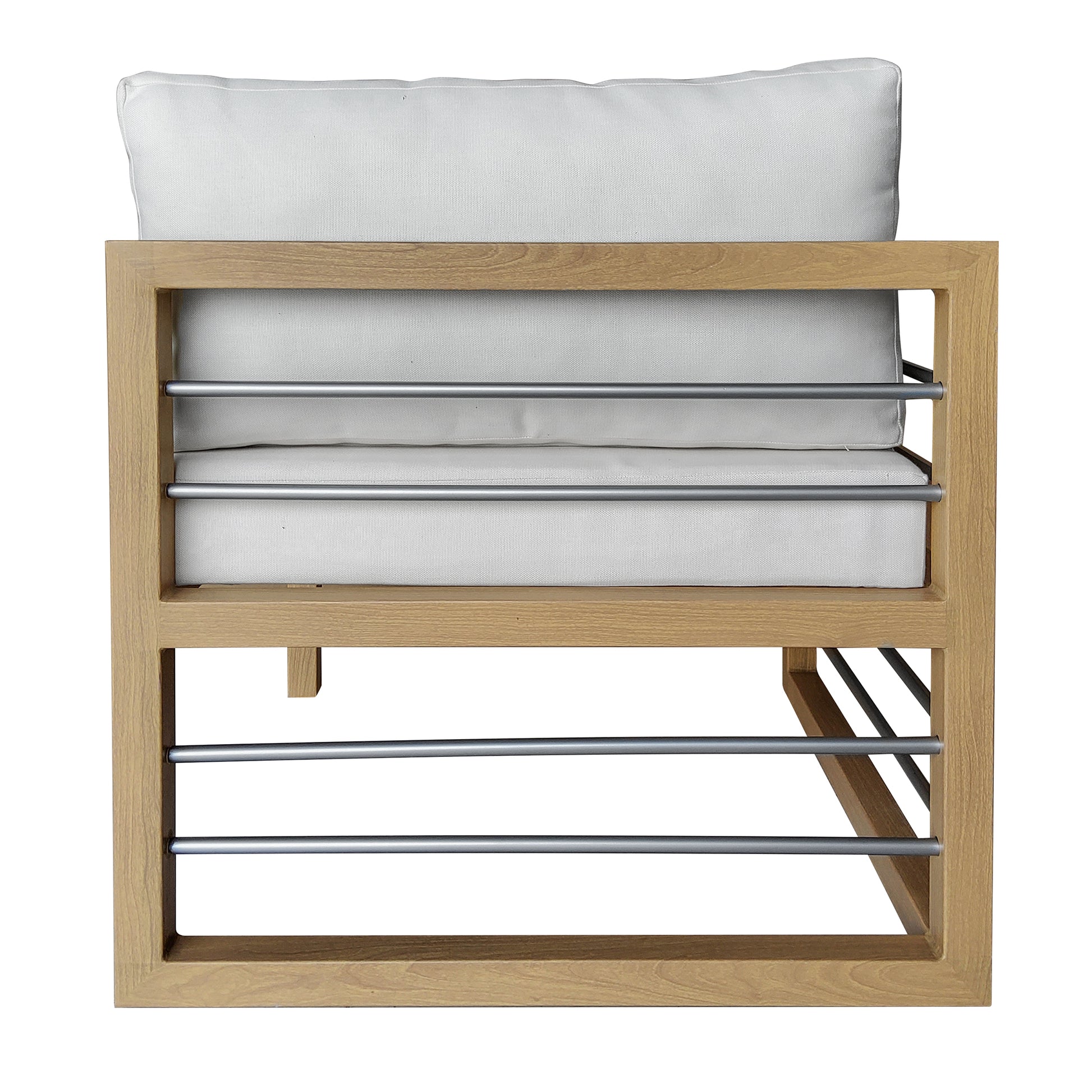 Whether you’re looking to relax or are entertaining on your deck or patio, you can do it in style with this 7 Piece Aluminum Outdoor Conversation Set. With modern lines and a fresh look, this modular set includes one corner sofa seat, four armless sofa seats, and two ottoman/coffee tables. You can configure the pieces of this set in a variety of ways to suit your space, and thanks to the weather-resistant aluminum that has a wood-grain coating, you get all the style and durability of wood furniture and none of the upkeep. With these cushions, you’ll also receive two cushion covers. One cover is our standard color and is already on the cushion, and the other cover will be the color of your choice, so you can refresh your outdoor oasis whenever you’d like. Zippered, removable cushion covers are machine-washable (air dry only). Plus, the 2-in-1 design of the ottomans allow them to function as coffee tables when you need additional space for drinks and snacks. Seats up to 5 people.