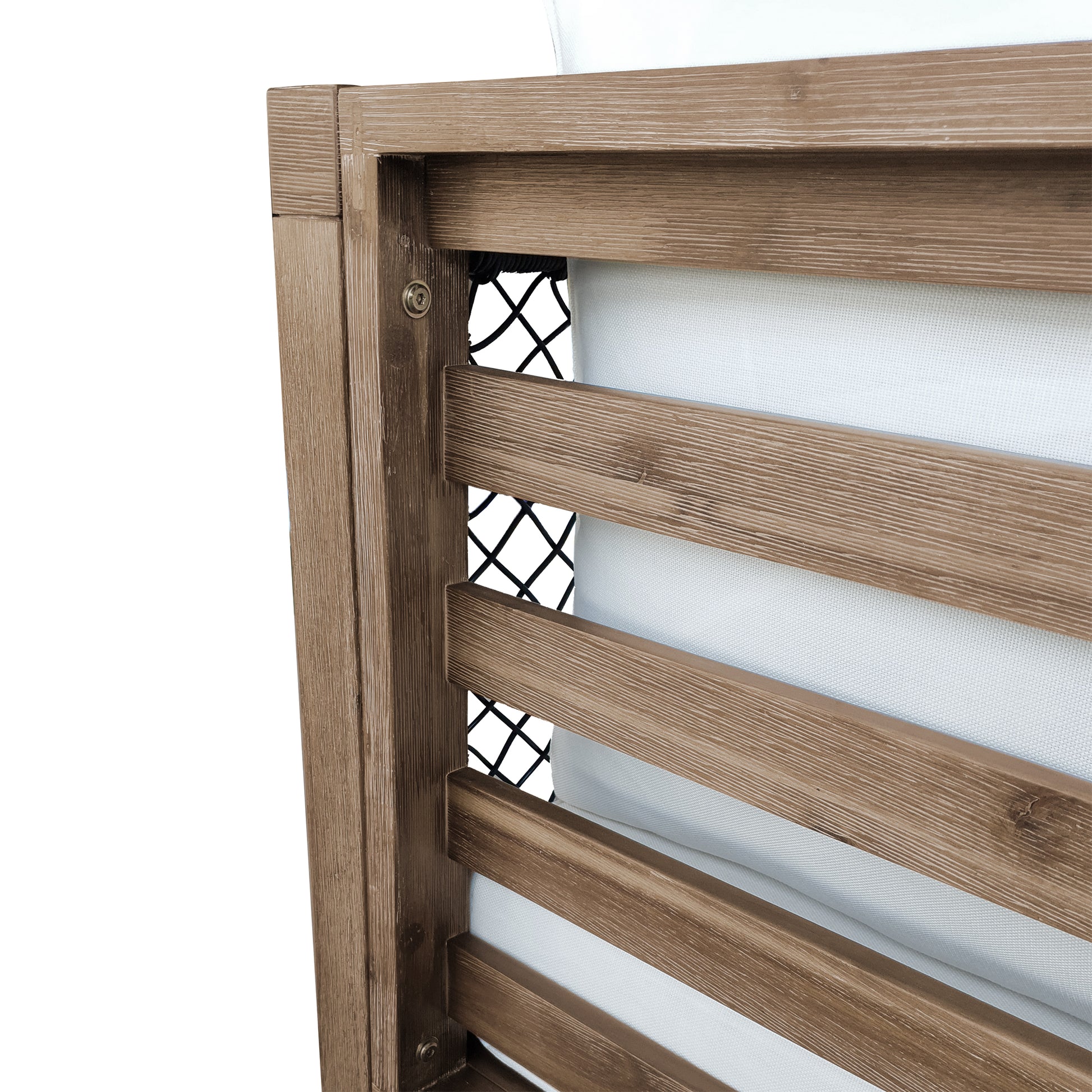 Bring a chic coastal vibe to your patio or poolside with this Outdoor Acacia Club Chair with Black Wicker and Cushions. Featuring clean lines and angles, this chair adds comfort and style to any outdoor space and will quickly become your new favorite spot to unwind. The combination of solid acacia wood and black cross-hatch resin wicker withstands the elements and is built to last through the seasons. The plush, six-inch cushions are easy to clean with zippered, machine-washable covers (air dry only). The standard White cushion covers come already equipped on this set’s cushions. When you choose one of the other color options, your choice comes included for patio style in the color you love and there’s always a backup. Complete the look by adding more pieces from this collection (sold separately).