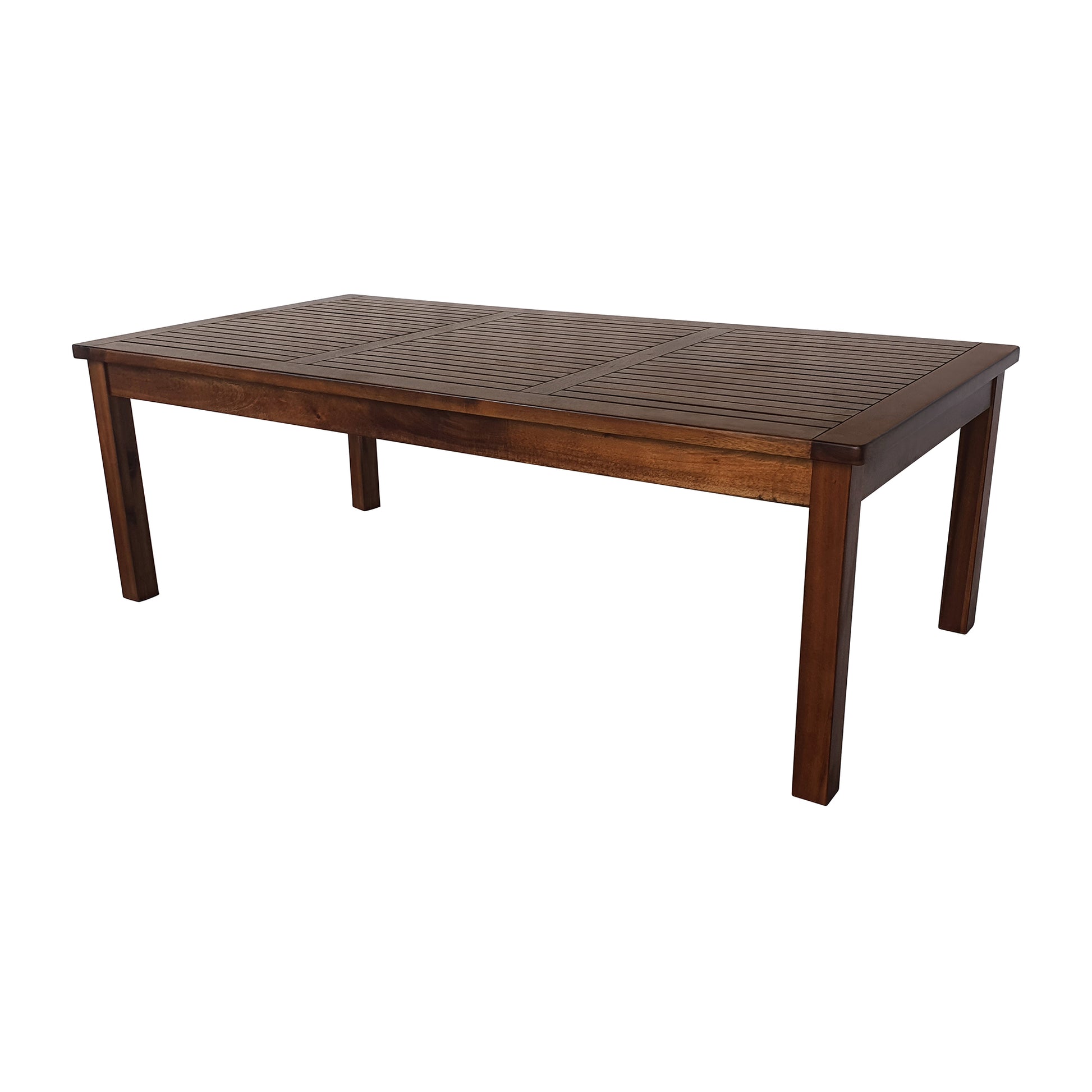 You and your guests can enjoy snacks, drinks, and games on the patio thanks to this outdoor Acacia coffee table. The coffee table’s spacious top offers ample room to accommodate your appetizers, dips, chips, and beverages. Constructed with Acacia wood, the table provides durability and a stylish appearance that pairs with your existing décor as well as other pieces in the collection (sold separately).