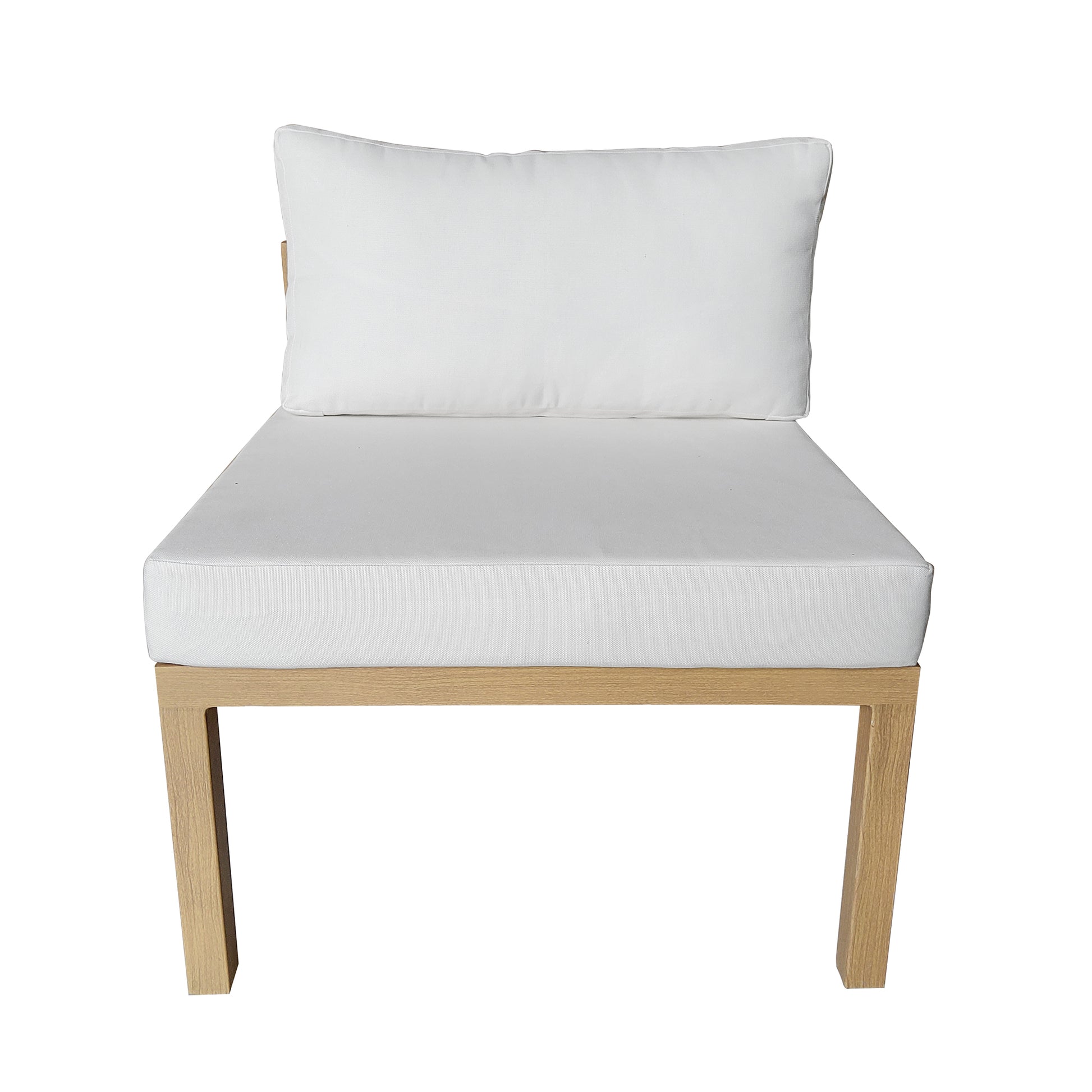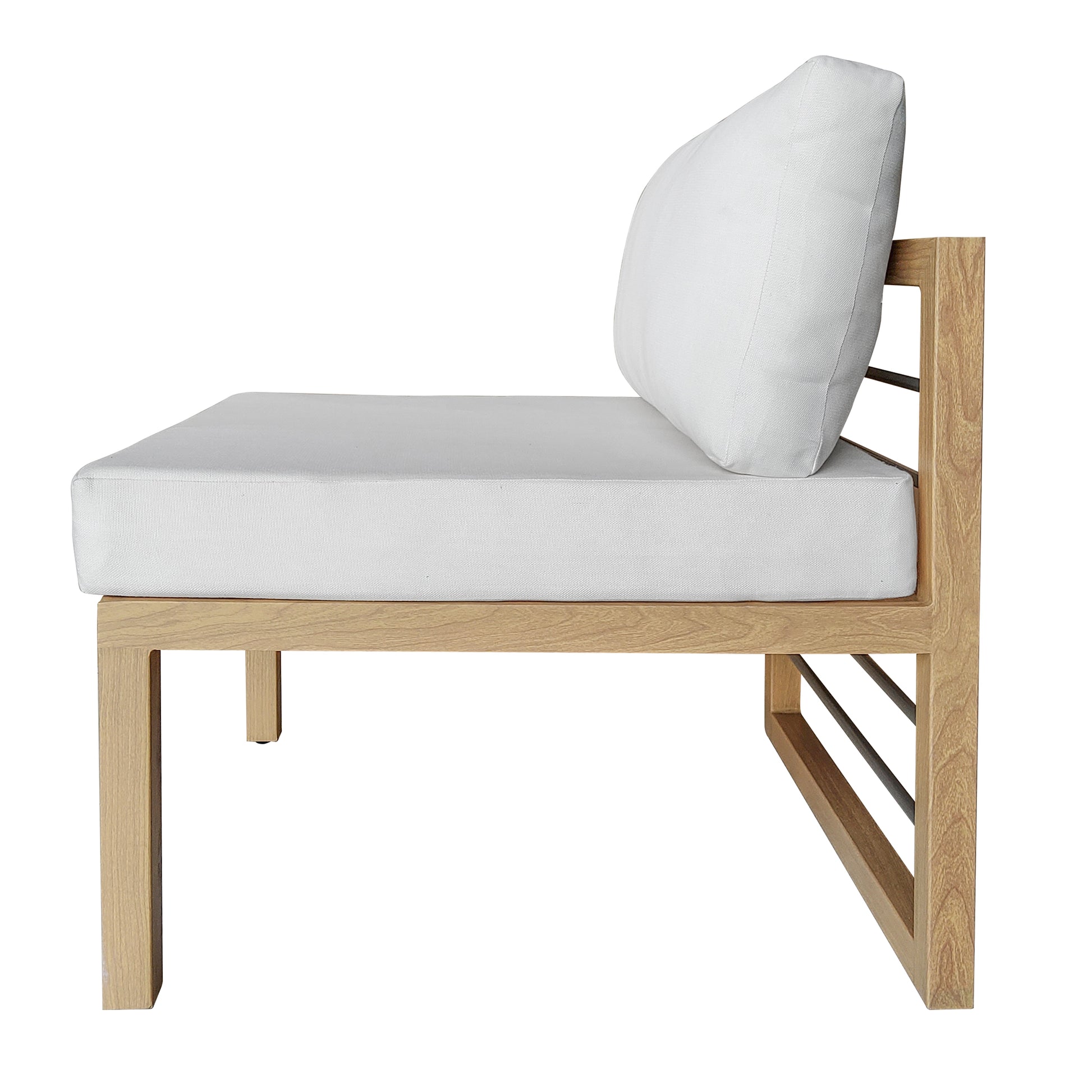 Whether relaxing with family or catching up with old friends on your deck or patio, it just feels better when you add the comfort of this set of two outdoor sectional armless sofa seats. When paired with other pieces in this modular collection (sold separately), you can create an outdoor seating arrangement that fits your needs. With modern lines and a fresh look, these seats are versatile and stylish. With weather-resistant aluminum that has a wood-grain coating, you get all the style and durability of wood furniture and none of the upkeep. With these cushions, you’ll also receive two cushion covers. One cover is our standard color and is already on the cushion, and the other cover will be the color of your choice, so you can refresh your outdoor oasis whenever you’d like. Zippered, removable cushion covers are machine-washable (air dry only).