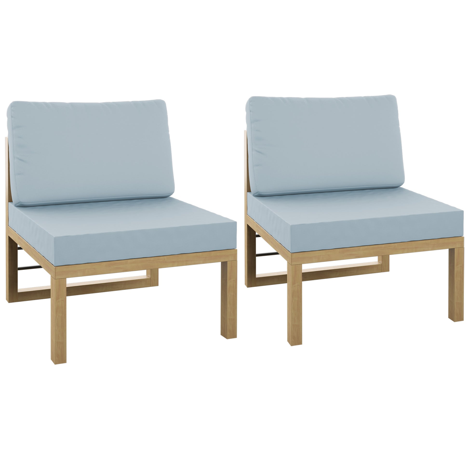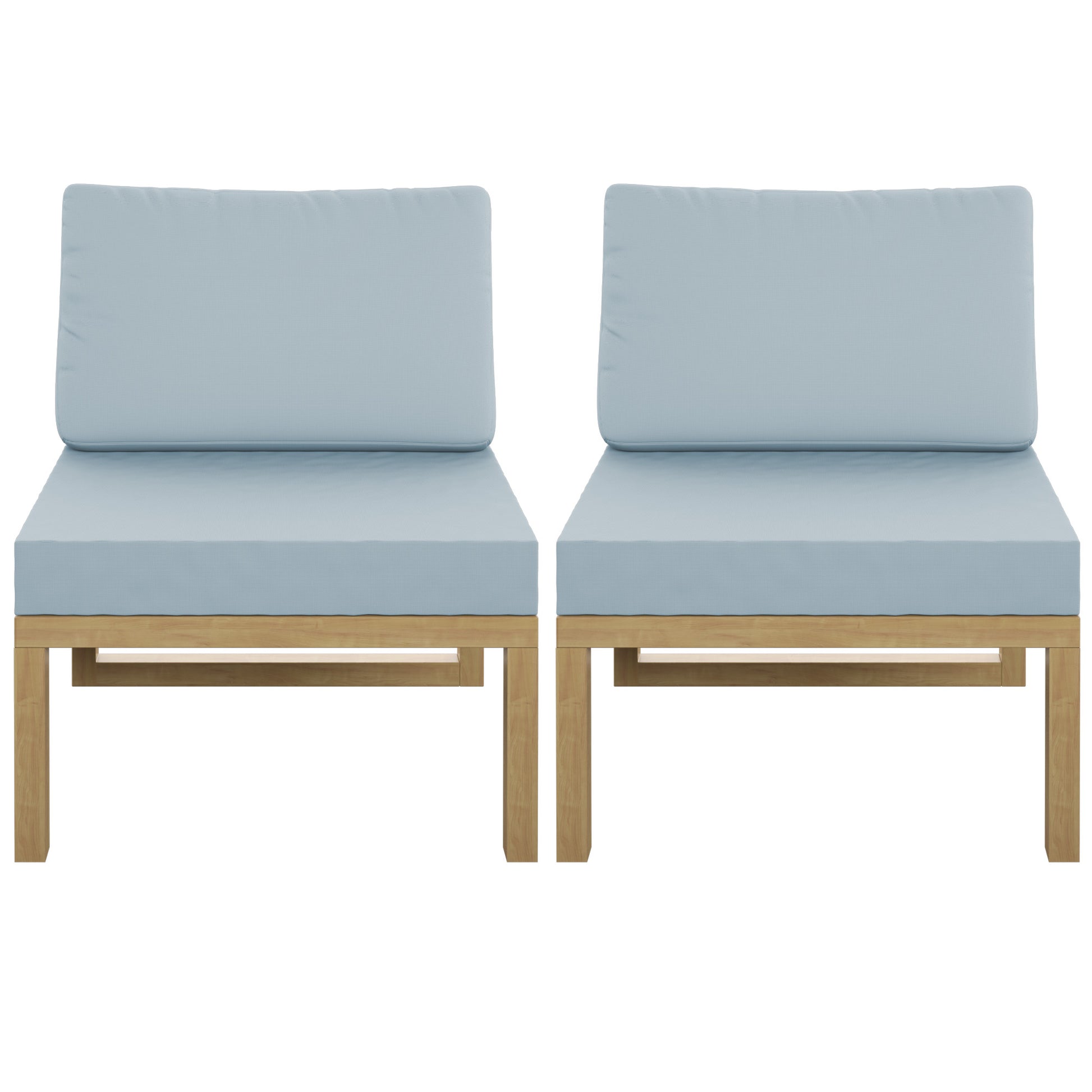 Whether relaxing with family or catching up with old friends on your deck or patio, it just feels better when you add the comfort of this set of two outdoor sectional armless sofa seats. When paired with other pieces in this modular collection (sold separately), you can create an outdoor seating arrangement that fits your needs. With modern lines and a fresh look, these seats are versatile and stylish. With weather-resistant aluminum that has a wood-grain coating, you get all the style and durability of wood furniture and none of the upkeep. With these cushions, you’ll also receive two cushion covers. One cover is our standard color and is already on the cushion, and the other cover will be the color of your choice, so you can refresh your outdoor oasis whenever you’d like. Zippered, removable cushion covers are machine-washable (air dry only).