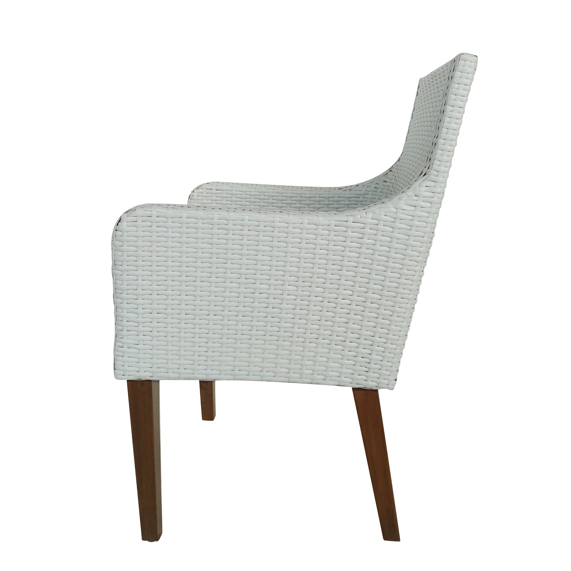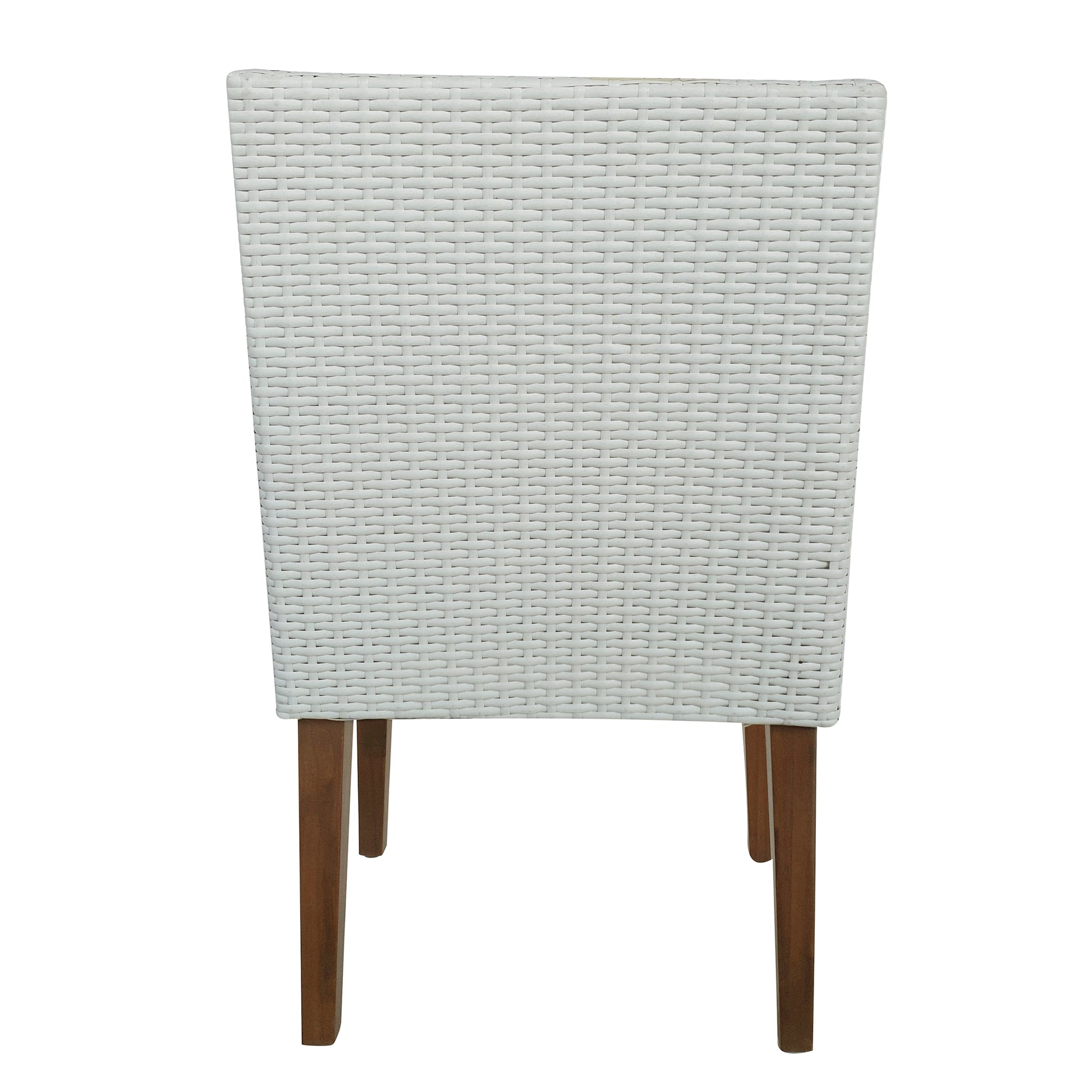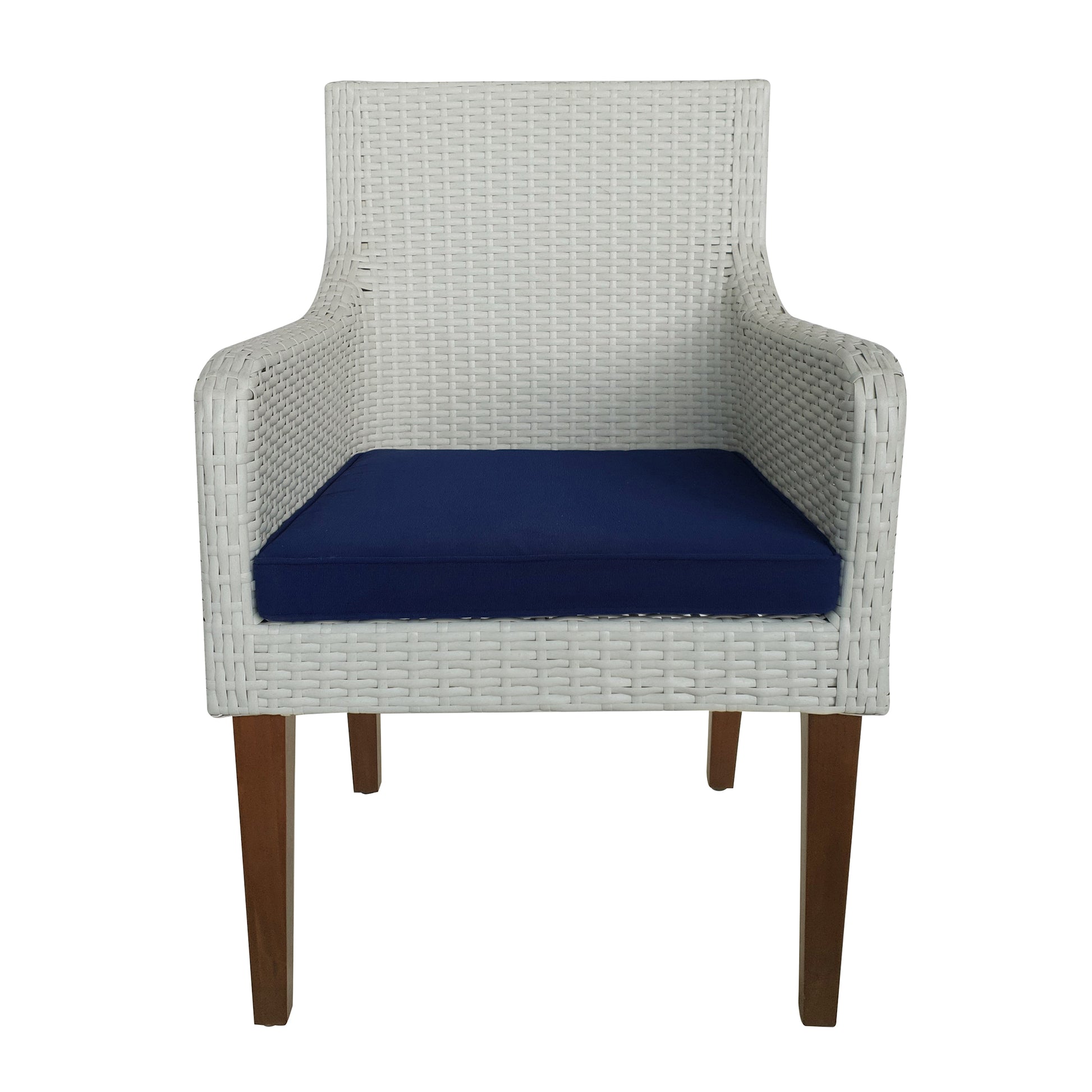 Designed for backyard entertaining, this Set of 2 Outdoor Dining Armchairs with Cushions helps you create a sophisticated space for alfresco gatherings. Crafted for durability with resin wicker uppers wrapped around aluminum frames and finished with acacia legs, these stylish chairs also include sloping arms and weather-resistant cushions with zippered, removable covers that are machine washable (air dry only). These chairs come with the standard color Navy cushion covers already equipped on the cushions. When you choose one of the other color options, your choice comes included for patio style in the color that’s perfect for your deck. Use these chairs around your existing dining table or on their own to instantly create a welcoming gathering place for friends and family. Or you can complete the look by adding a coordinating table from the same collection (sold separately).