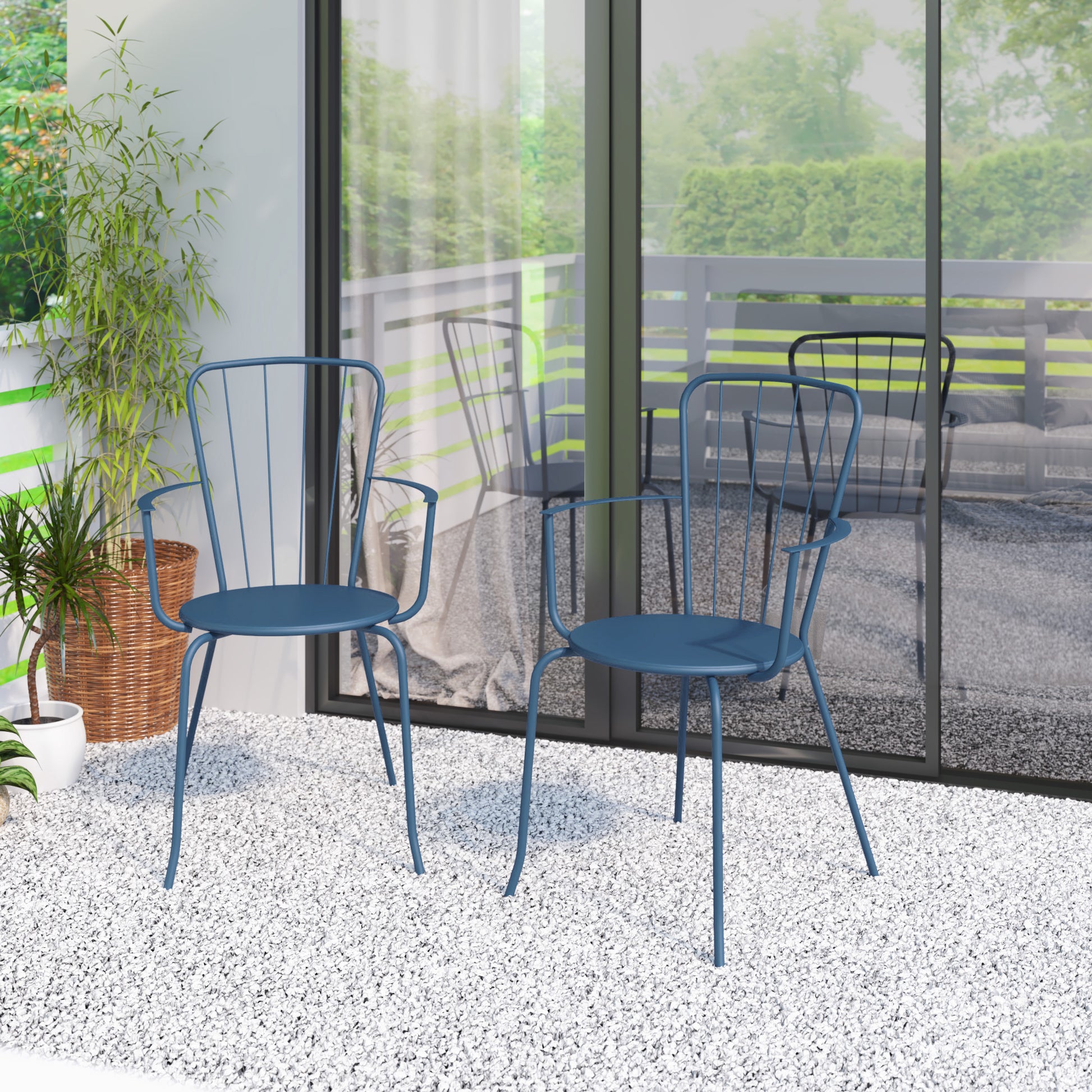 Whether you’re creating a cozy dining space or adding seating to an existing table, this set of two dining chairs provides the comfortable seating your outdoor space needs. The chairs are crafted from sturdy steel for reliable support and a sleek appearance that coordinates with the modern style of your patio or balcony.