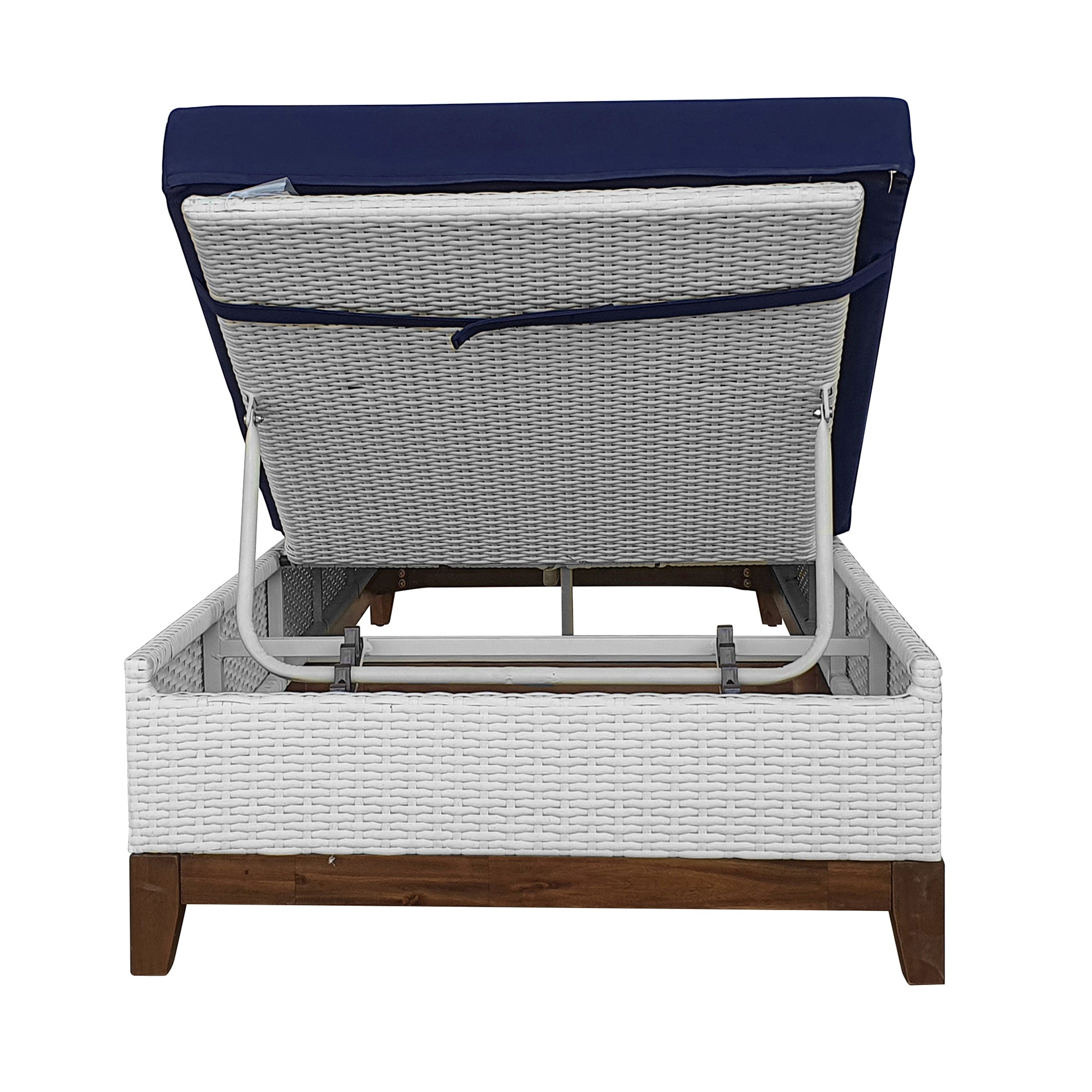 Designed for enjoying your backyard, this Outdoor Wicker Chaise Lounge with Acacia Base from TK Classics creates a sophisticated space to recline, relax, and renew. Constructed with a playful mix of materials for a chic coastal look, this chaise lounge features resin wicker wrapped on an aluminum frame with acacia base. Low maintenance and weather resistant, this chaise is easy to clean, while thick, comfortable cushions have machine washable, removable covers for easy laundering. This chaise lounge comes with the standard color Navy cushion covers already equipped on the cushions. When you choose one of the other color options, your choice comes included for patio style in the color that’s perfect for your deck. Pair it with other pieces of this collection (sold separately) for a seamlessly stylish look.