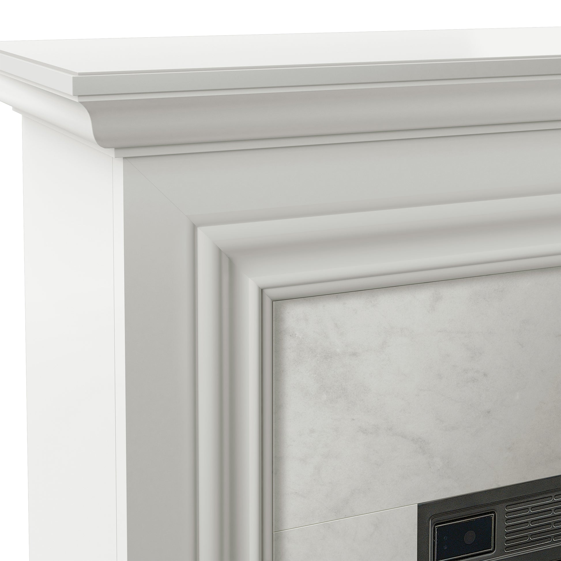 Bring more beauty into your home with the Tresanti® Cassandra Wall Mantel with 28” ClassicFlame® Electric Fireplace. With a natural marble surround and crown molding accents, this mantel adds a timeless design to any room you choose. Feel instantly toasty as the infrared quartz heater warms up to 1,000 square feet of supplemental heat without drying out the room’s air; the flame effects can operate independently from the heater so you can enjoy the look of a glowing fire year-round. Customize a soothing atmosphere thanks to five flame color settings: Midnight Fire, Campfire, Sapphire, Amethyst, and Spectrafire®. And because safety is our top priority, you’ll love the peace of mind that comes from patented Safer Plug® fire prevention technology. Safer Plug® monitors the temperature of the plug and automatically shuts the heater off should overheating or unsafe conditions occur. Best of all, this piece arrives fully assembled, so you can get back to the things that matter.