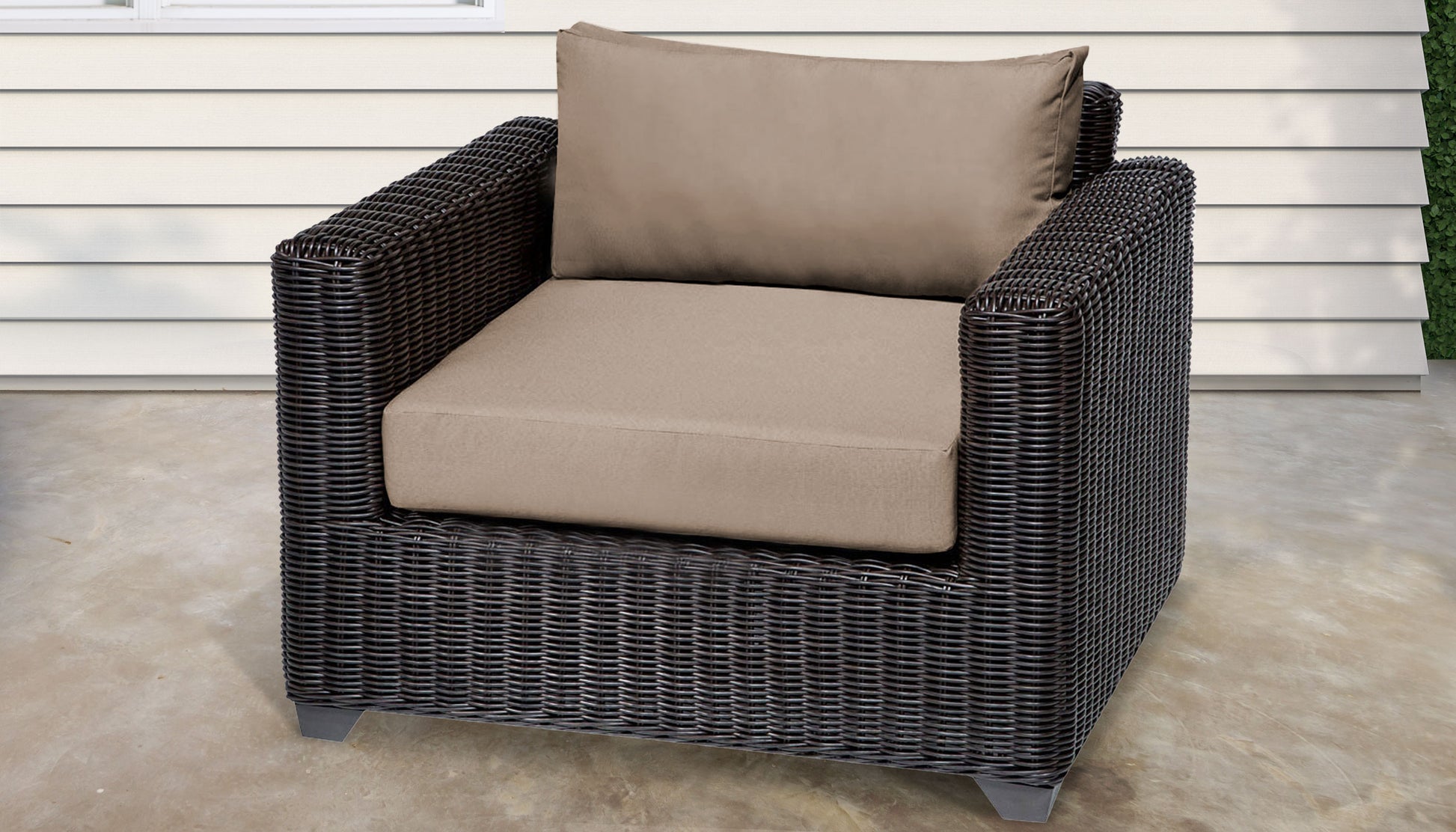 Outstanding comfort and structural integrity make this Venice Club Chair a welcome outdoor addition. The rich brown wicker is expertly handwoven around concealed powder-coated aluminum frames, which are designed for the ultimate in weather resistance. A gently reclined back and rounded chair arms encourage a restful day of lounging. Thick 6" cushions are protected with weather-resistant slip covers that can be removed for easy cleaning.