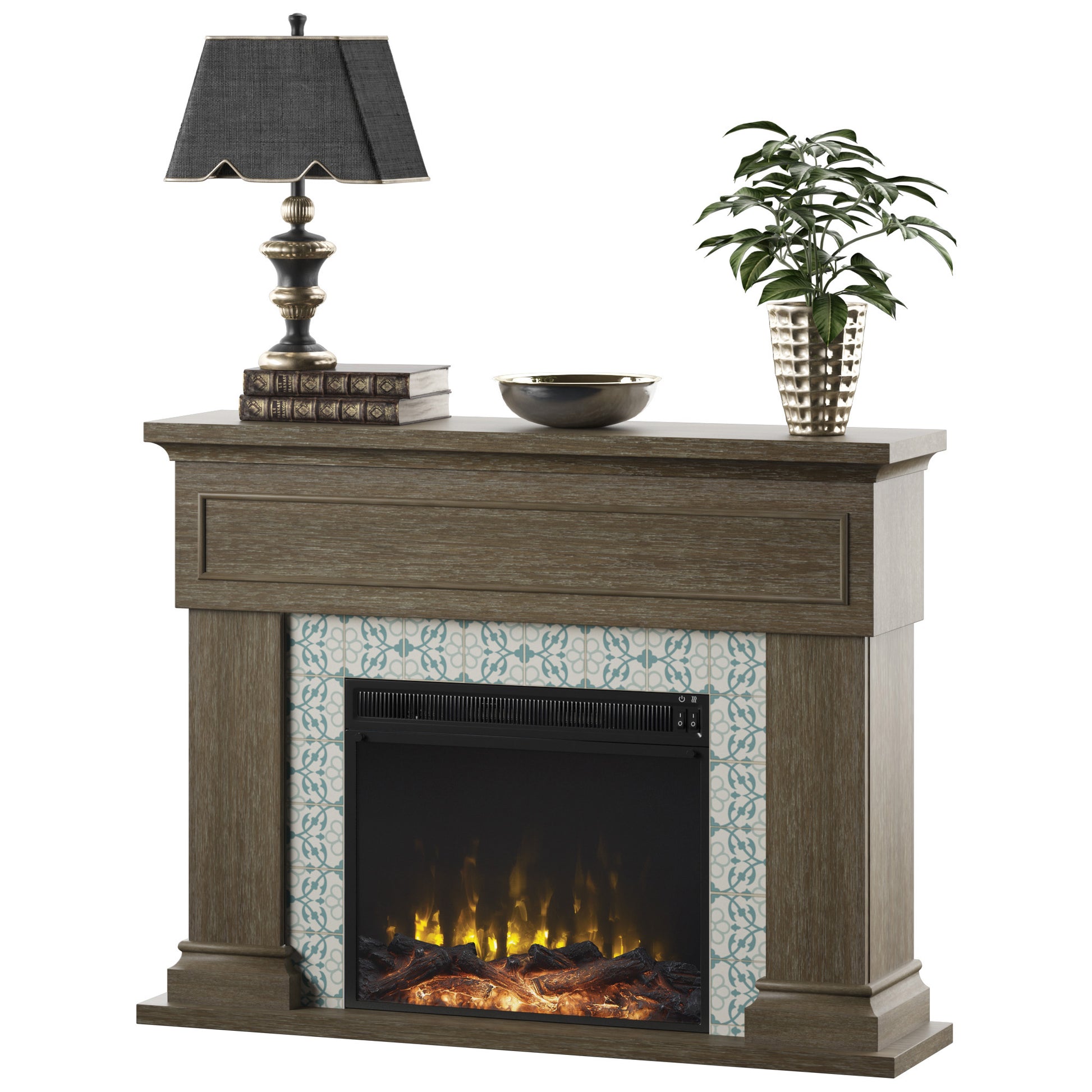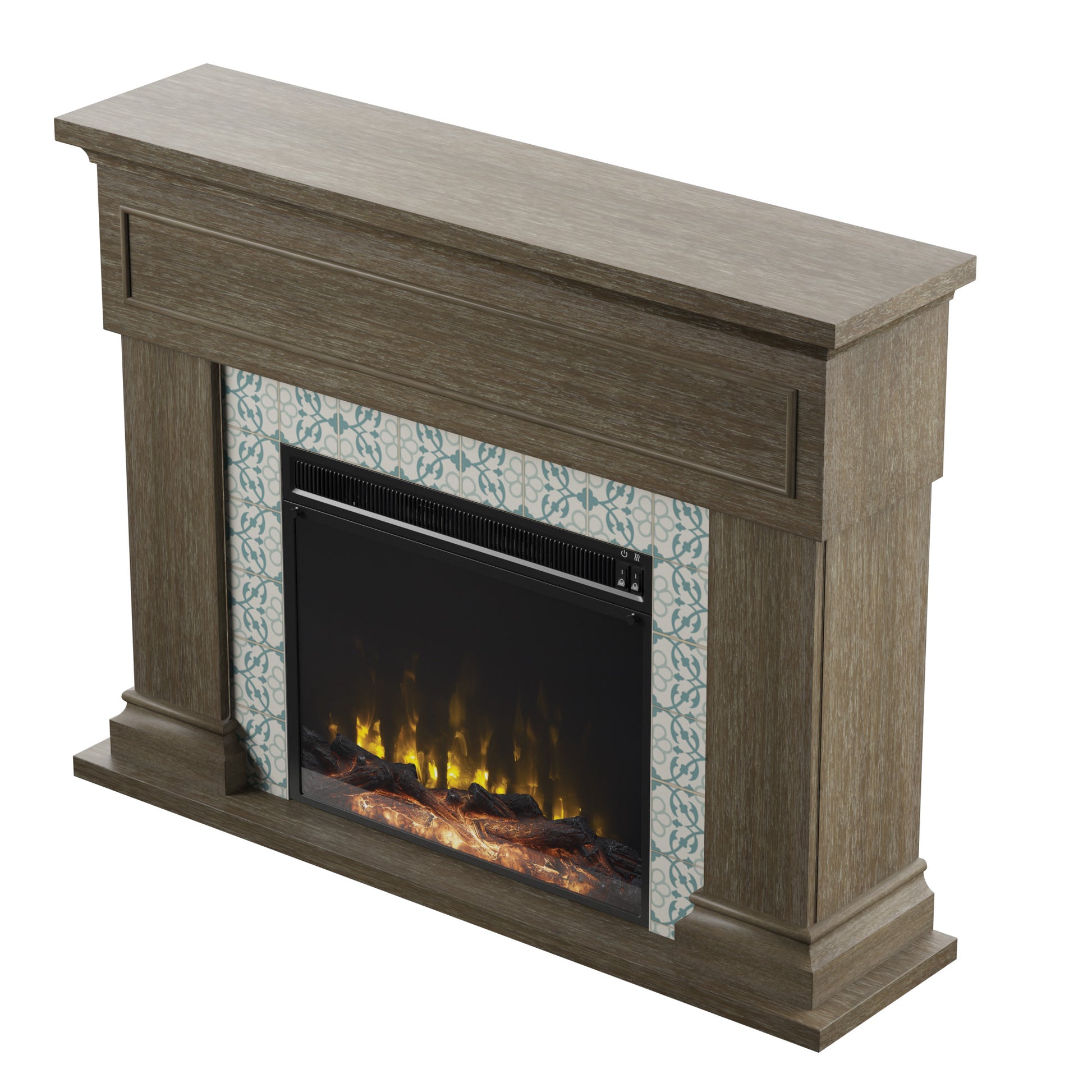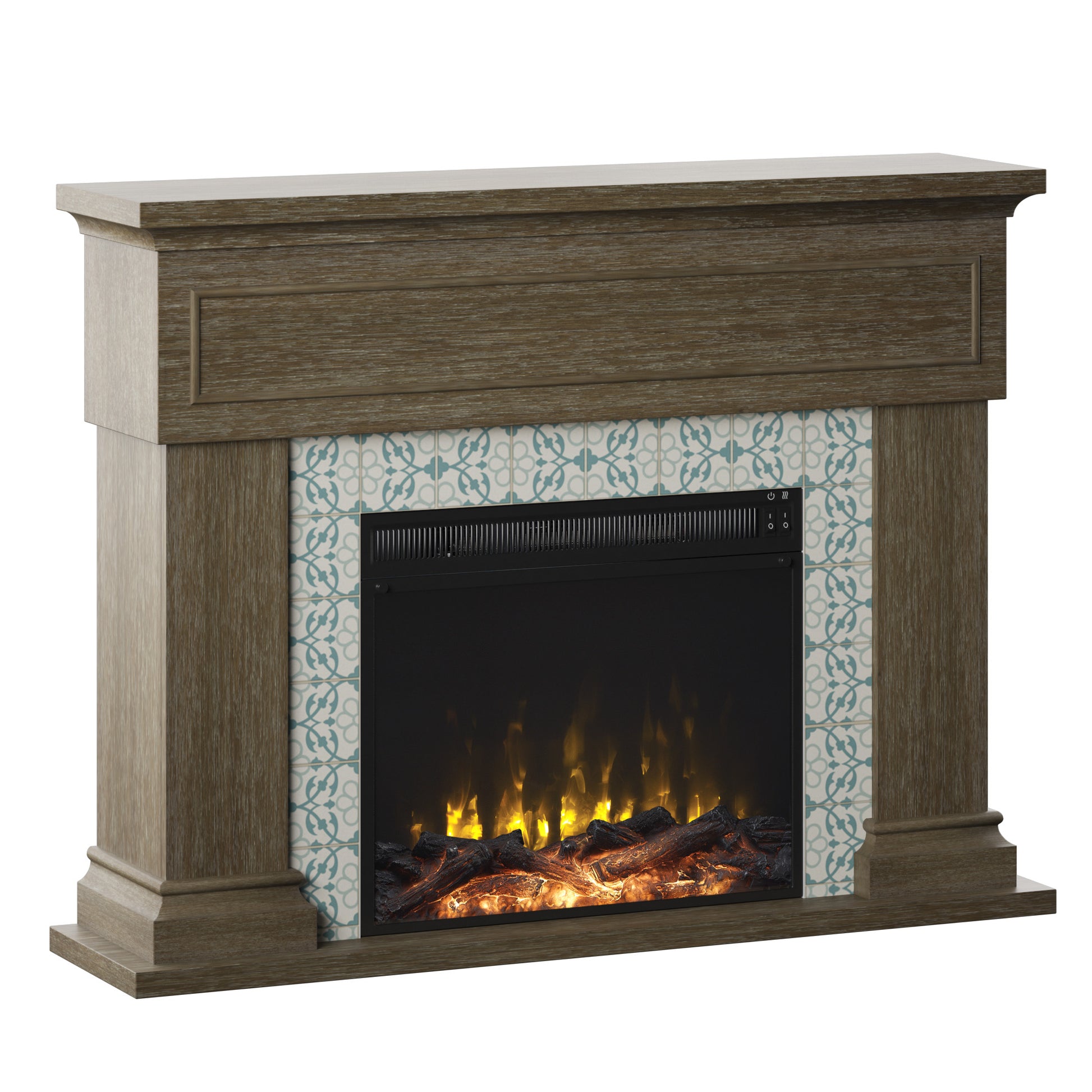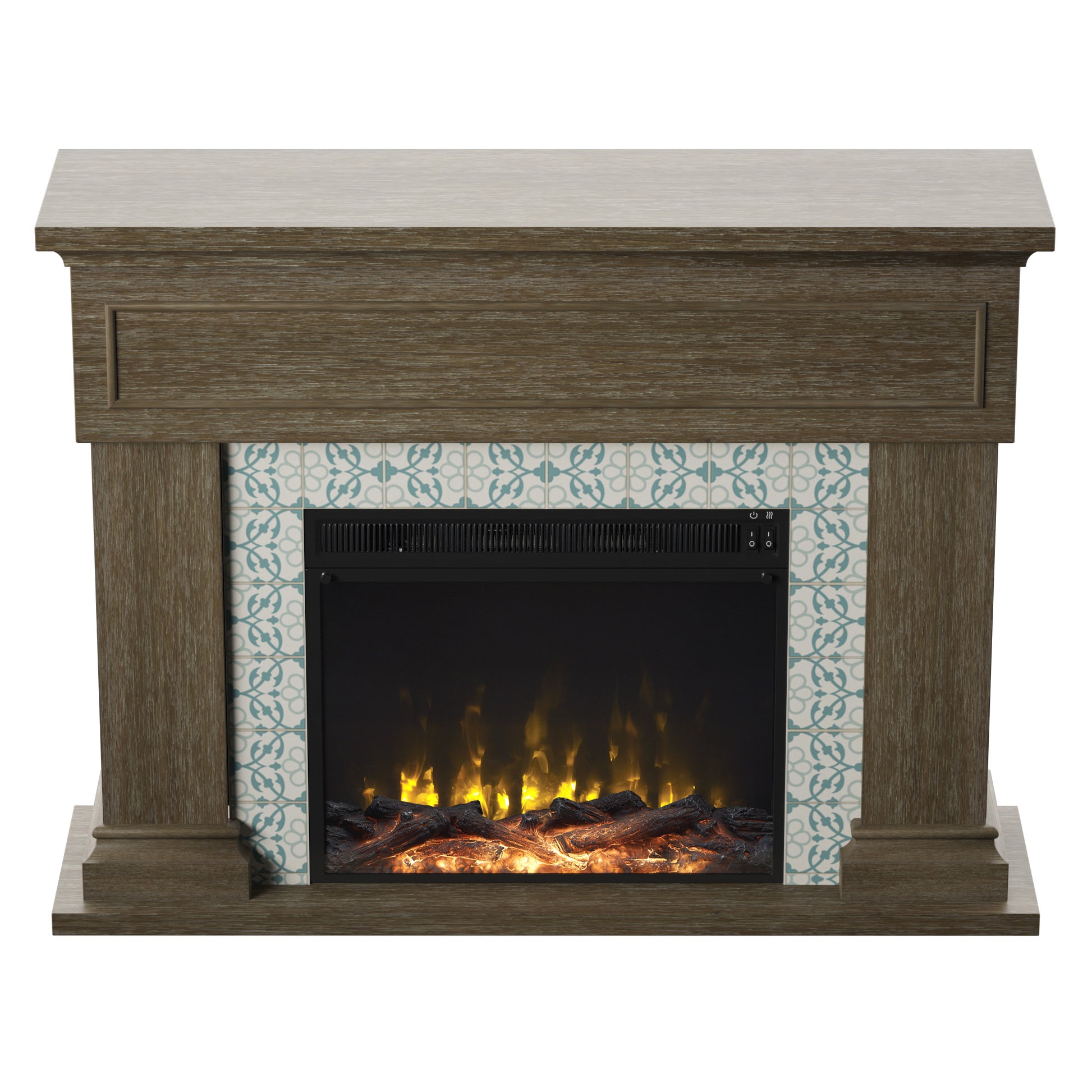 Your home is a hub for friends and family, the place where you host gatherings from holiday meals to unforgettable parties. Make it even more inviting with this Twin Star Home® Wall Mantel Electric Fireplace with Reversible Surround. Beautifully crafted with traditional style, its classic design offers an elegant look for your living room, den, or any space at home. The reversible surround lets you choose a sophisticated faux marble finish or a striking mosaic tile design to frame the fireplace. Plus, you can choose the look that suits your home with the choice of a traditional log set and ember bed or sparkling fire crystals in your fireplace. Both come included for installation behind the tempered glass display. Add your favorite decorative accents to the mantel, then turn on the fireplace to chase away the chill with comforting warmth or simply bask in the glow of the flames. Best of all, using the fireplace as part of a supplemental zone heating strategy can lower your heating costs while keeping you comfortable year-round. Turning down your thermostat and turning on your electric fireplace for supplemental zone heating that warms up to 400 square feet of your home can save you money on